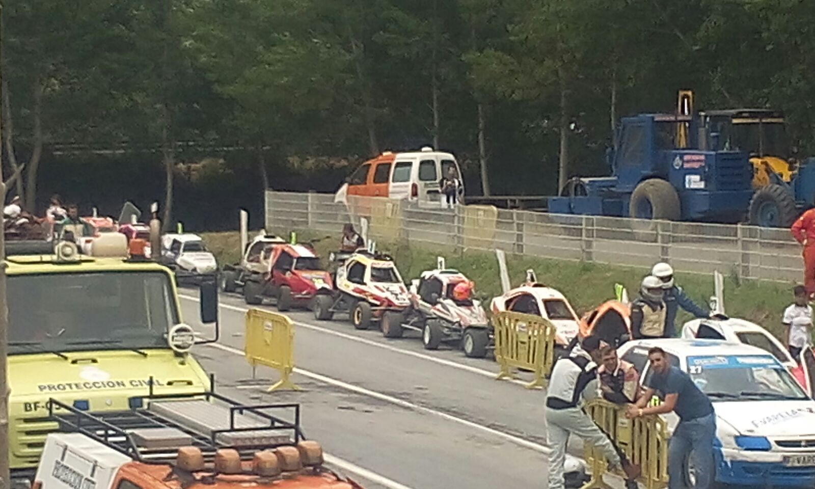 Después de un rato rodando, Jesús consiguió bajar bastante sus tiempos y a mi hijo Alejandro se le rompió el cable del acelerador en la cuarta vuelta, y en cuestión de minutos estaba arreglado y vuelta a rodar.