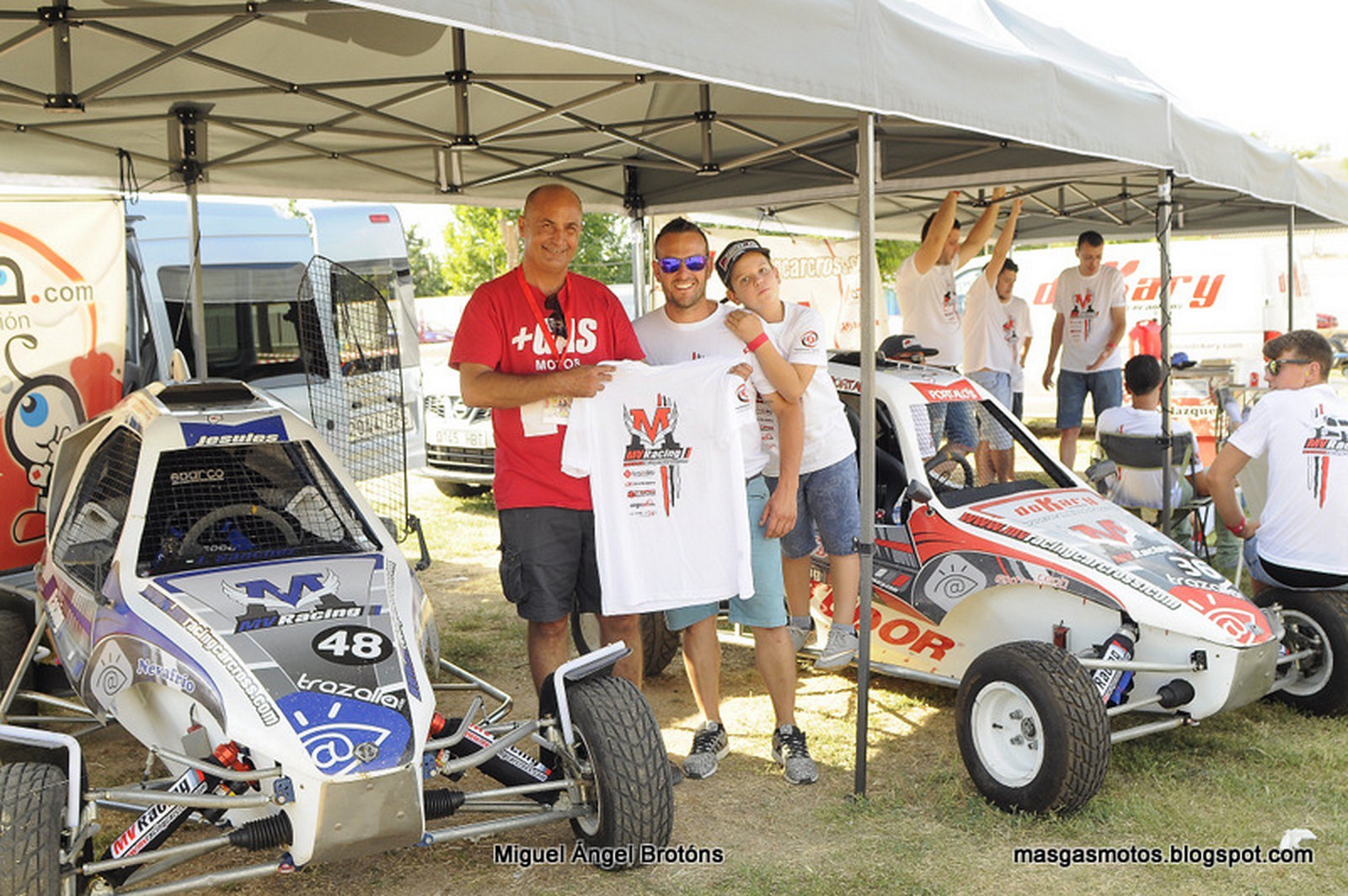Al poco llegaron los fotógrafos de +Gas Motor que se mostraron muy interesados por los MV´s, y como muestra de nuestro agradecimiento, nuestro jefe del departamento comercial Alonso Manzano les obsequio con unas camisetas de MVracing.