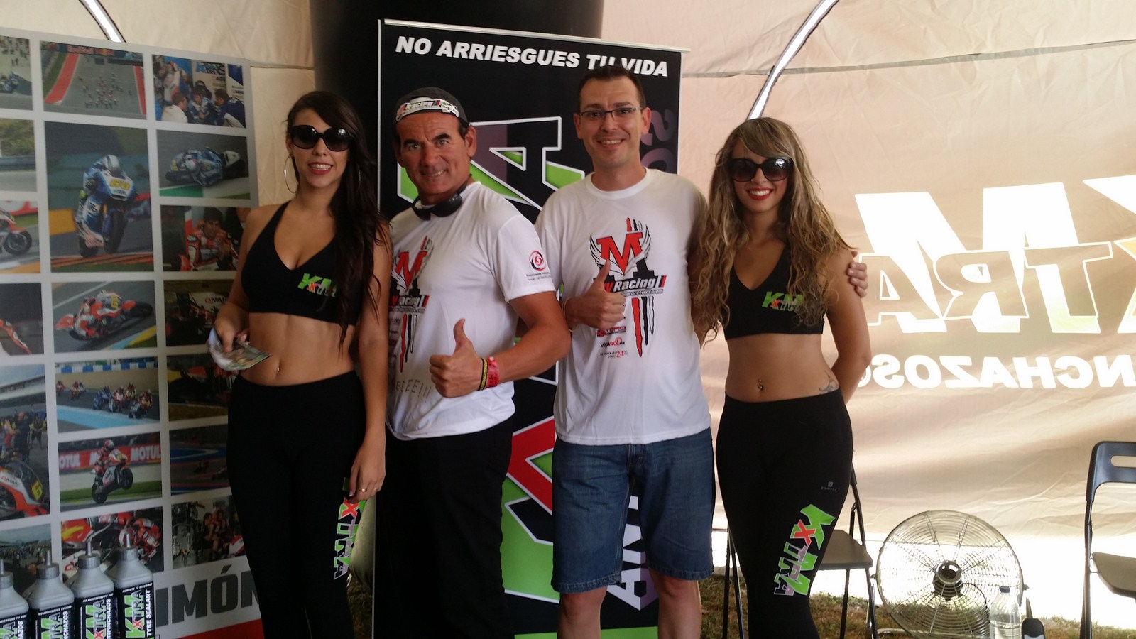 Volvimos a visitar la magnífica carpa de Km Xtra y nuestra sorpresa fue mayúscula al encontramos con sus estupendas azafatas que acababan de llegar, fueron muy simpáticas y agradables, además no dudaron en hacerse fotos con los componentes de nuestro equipo.