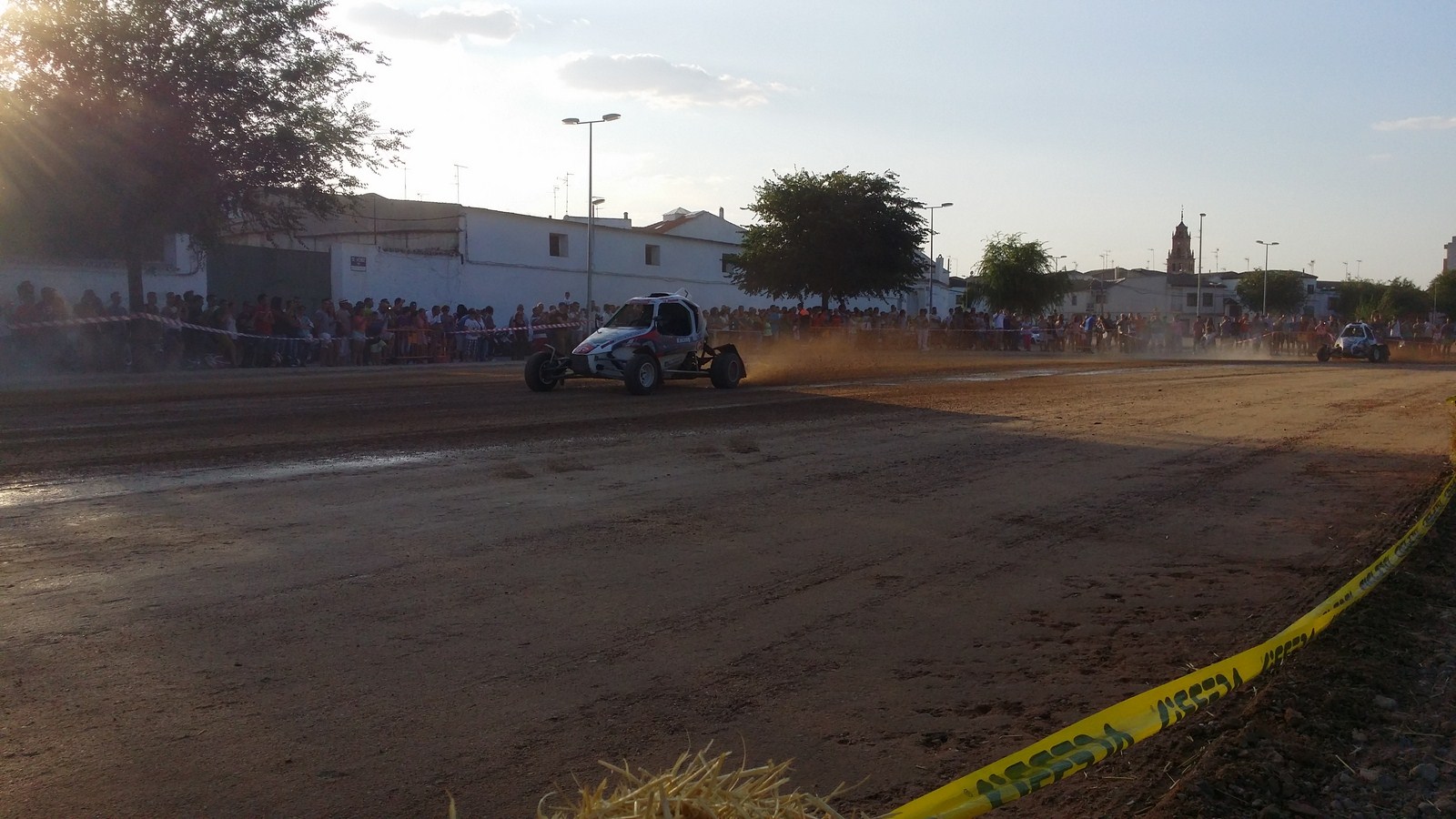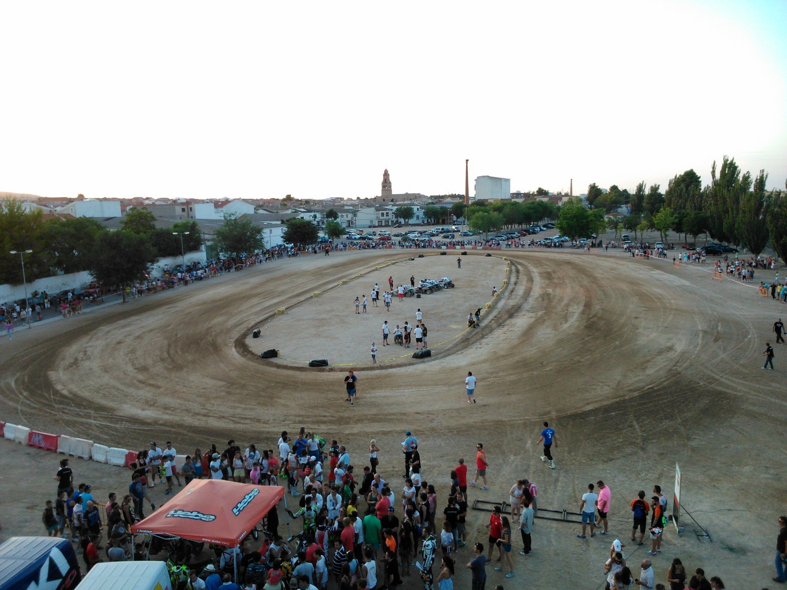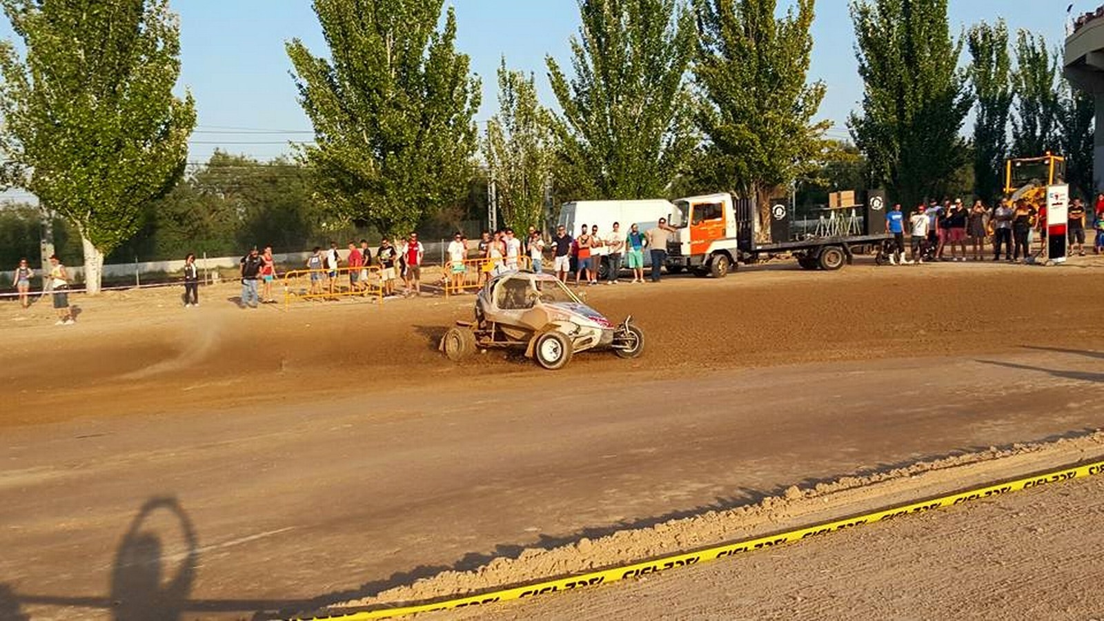 La pista quedó bastante batida, por lo que la organización decidió dar una pasada con la niveladora y la apisonadora para allanar el piso.