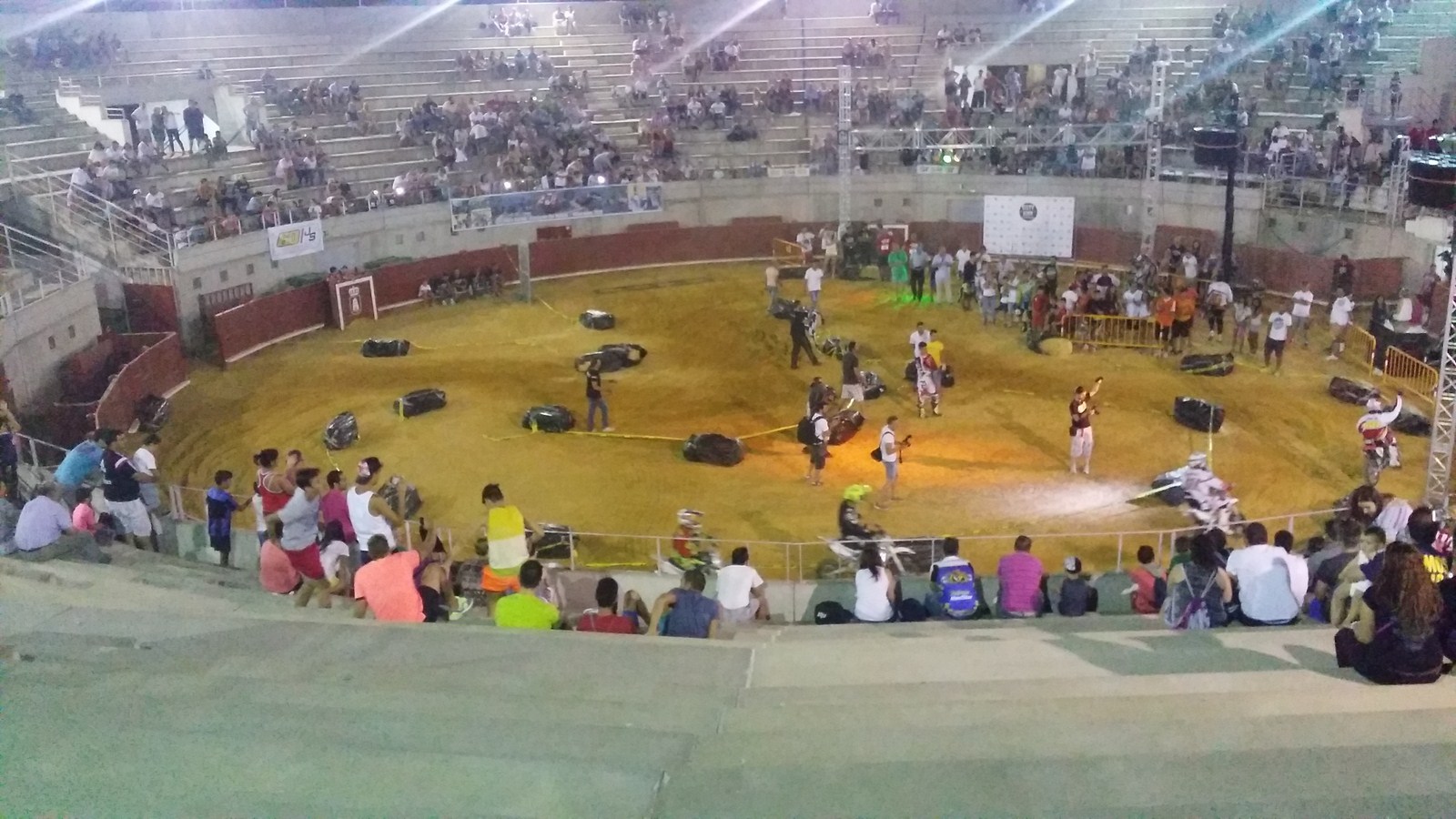 Y llegó el momento de las pit bikes, que tuvo lugar en el interior de la plaza de toros. No hay duda de que el público disfruto muchísimo al ver a sus ídolos conduciendo las mini motos, chocando entre sí, haciendo caballitos, cayéndose en las curvas y viéndolos disfrutar como niños.