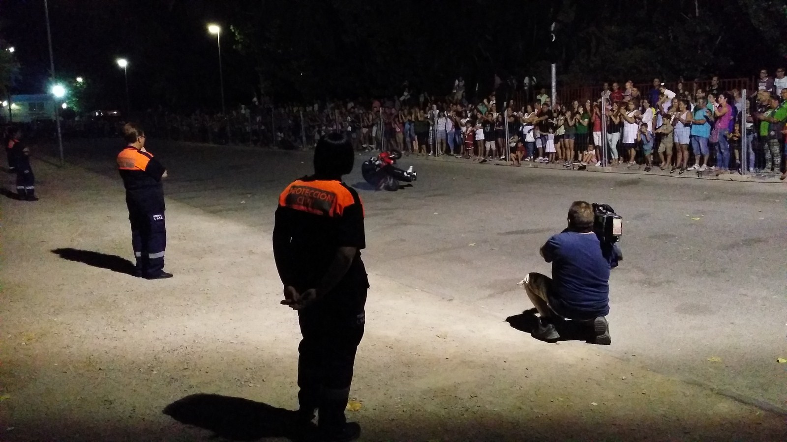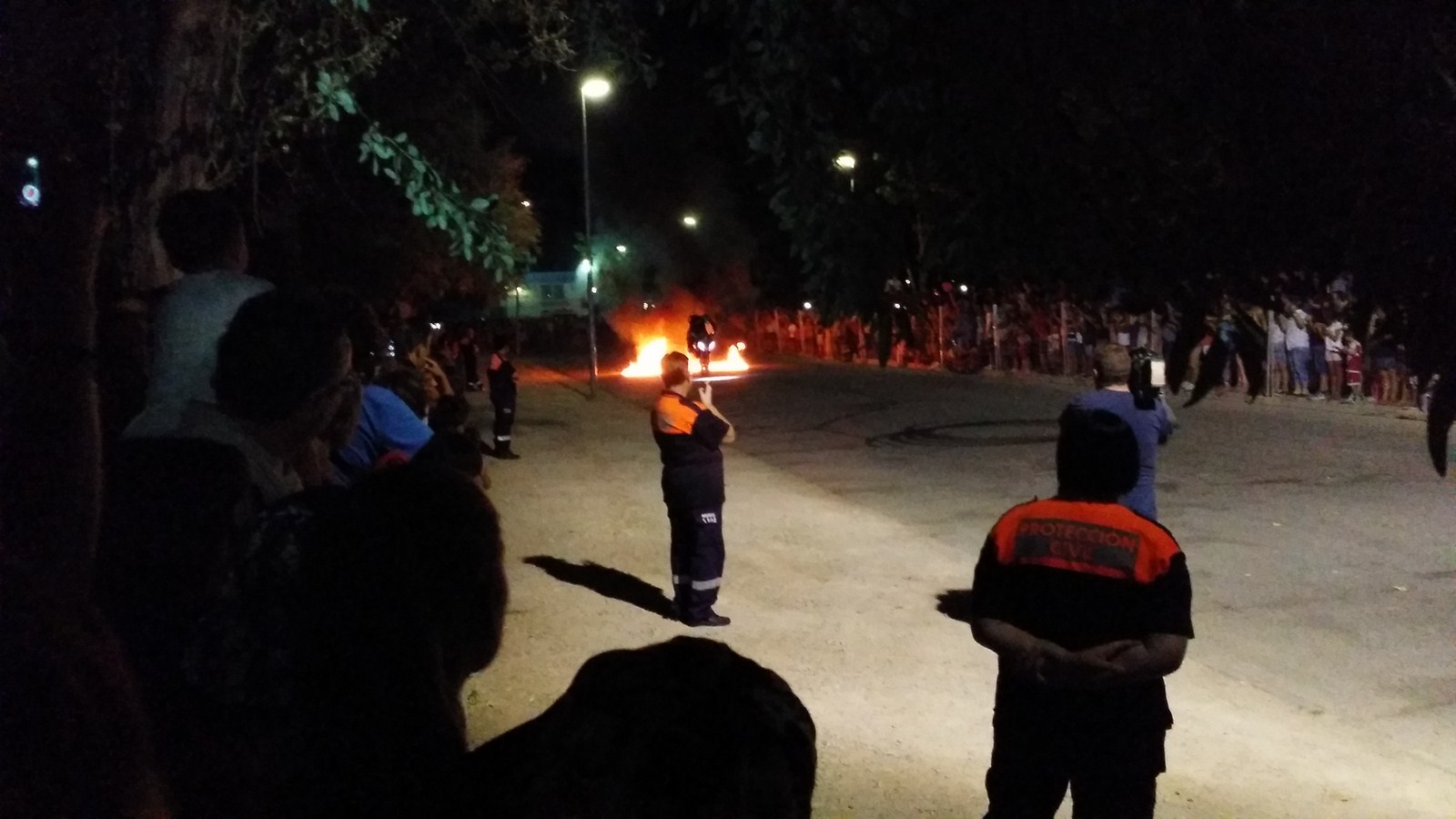 A media noche llego el gran espectáculo de Emilio Zamora, uno de los mejores pilotos de Stunt en España, el cual nos hizo disfrutar sobre todas sus motos de caballitos, invertidas, roscos, derrapadas sobre fuego, etc.
